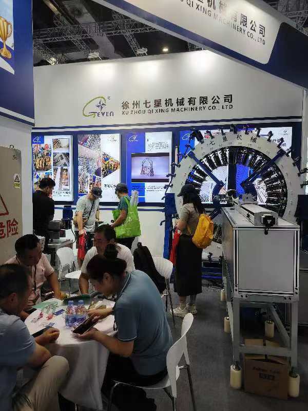 在本次展覽會,徐州七星機(jī)械有限公司展出設(shè)備臥式110-48錠高速編織機(jī),復(fù)繞機(jī),內(nèi)曲面編織機(jī)。