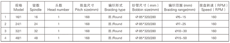 該系列編織機(jī)主要用于各種大規(guī)格繩纜(如船用纜繩,鐵路用篷布繩,消防用繩,拖車?yán)K,引紙繩,皮繩等)、大規(guī)格導(dǎo)電帶、高壓膠管、圓型盤根等。