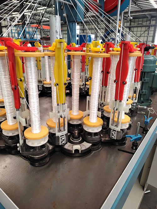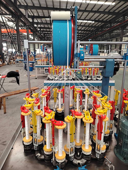130-32*2電機1.5KW,編織繩子10-35mm。1、帶計米,錠子可以改成雙走 3、4、32錠、48錠含撐線圈分別Φ300,5、電壓380V,70*213紗管。可掛線出廠。