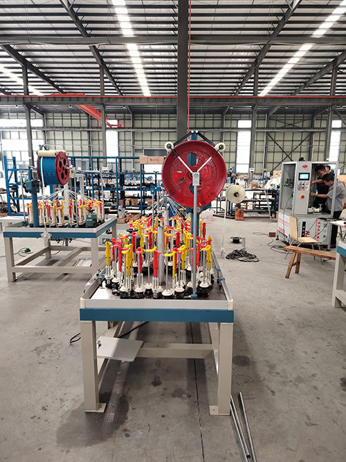 130-32*2電機1.5KW,編織繩子10-35mm。1、帶計米,錠子可以改成雙走 3、4、32錠、48錠含撐線圈分別Φ300,5、電壓380V,70*213紗管??蓲炀€出廠。