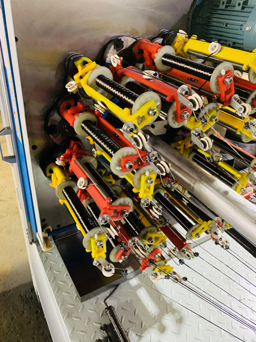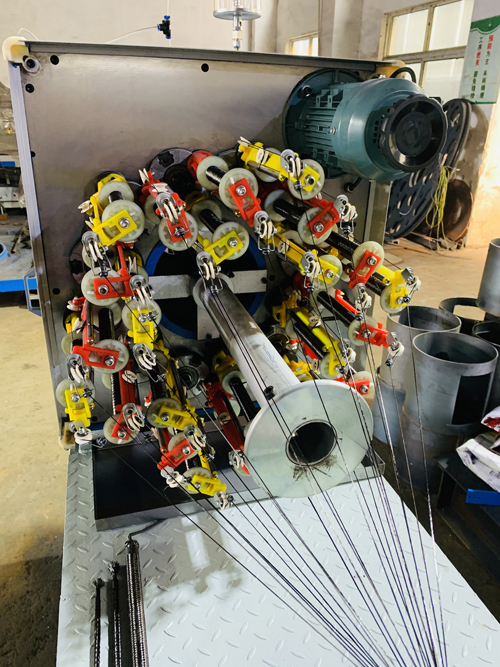 編織碳纖維管,氣動履帶牽引,帶芯棒托架,工具箱一套。110導(dǎo)輪搖頭錠子,紗管55*163 。380V/三相電,變頻調(diào)速。